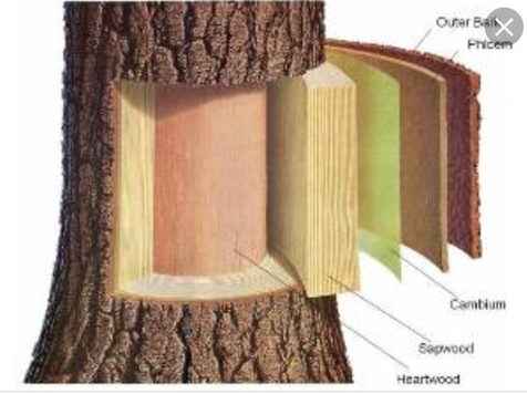 Cambium = قسمت تهاتر گیاه (محل مبادله) Sapwood = قسمت رویه و نرم چوب Heartwood = مغز چوب